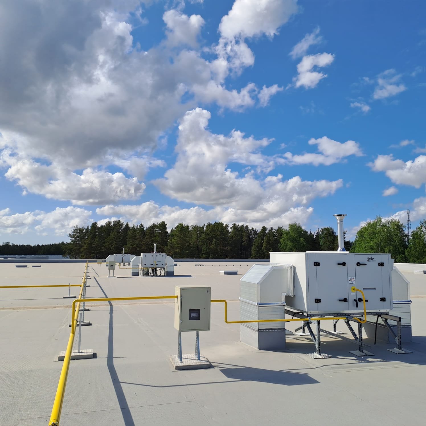 Aparat grzewczo-wentylacyjny EOLO RT to urządzenia typu Rooftop do montażu dachowego, które łączą funkcje ogrzewania i wentylacji w halach przemysłowych i magazynowych. Dzięki swojej zaawansowanej konstrukcji EOLO RT dystrybuują ogrzane powietrze w sposób bezpośredni, jednocześnie zapewniając wentylację. Zapewniają efektywne ogrzewanie dużych obiektów, oferując swobodną konfigurację i optymalizację kosztów
