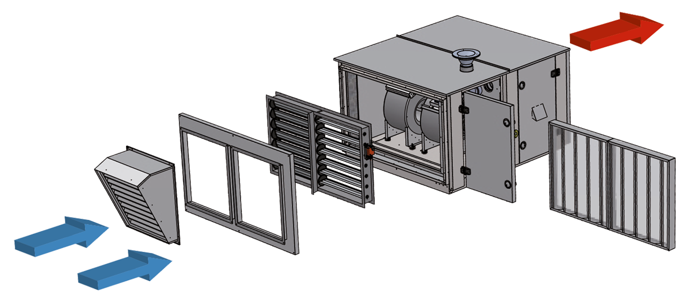 EOLO RT charakteryzuje się modułową budową, co pozwala na precyzyjne dopasowanie do potrzeb danego obiektu, podobnie jak nawiew i pobór powietrza.