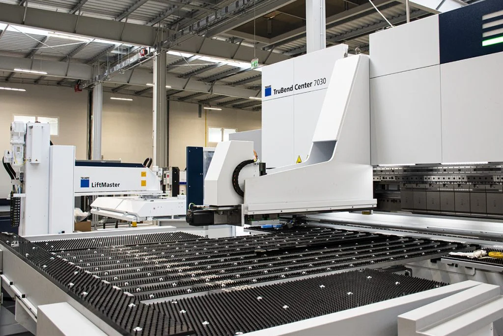 Gięcie blachy w Systema Polska wykonujemy, wykorzystując centrum gnące TruBend Center 7030 (B34) i prasy krawędziowe Amada. Dzięki w pełni automatycznej technologii gięcia na zaginarce możemy tworzyć nawet skomplikowane detale, zapewniając jednocześnie wysoką wydajność. TruBend Center oferuje maksymalną produktywność dzięki zwiększeniu wysokości wypełnienia o 60% i jeszcze krótszym czasom cyklu. Rotacyjny manipulator detali oraz automatyczny załadunek i rozładunek pozwala produkować w pełni automatycznie i z wysoką produktywnością przy długości gięcia do ponad 3 metrów.